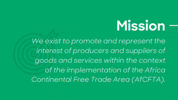 - To represent and protect interest of producers and suppliers of goods and services within the Africa Continental Free Trade Area.